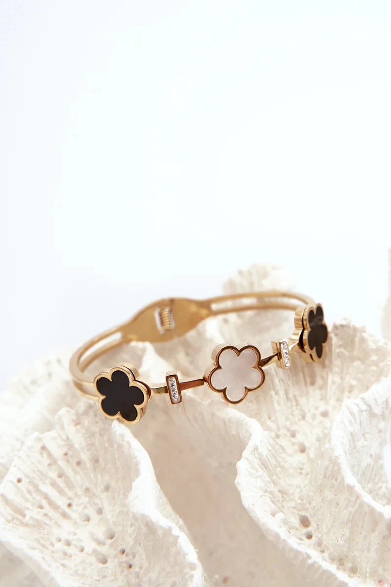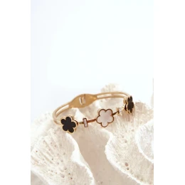 Dámský náramek s květinami, nerezová ocel, zlatá