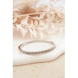 Dámský náramek vyrobený z nerezové oceli je elegantní a jemný doplněk ke každému outfitu. Ozdobený drobnými křišťály jemně třpytí, čímž dodává šperku lehkost a ženský půvab. Odolný materiál zajišťuje estetický vzhled na dlouhou dobu a univerzální design umožňuje, aby se náramek skvěle hodil jak k běžnému, tak i elegantnímu oblečení.