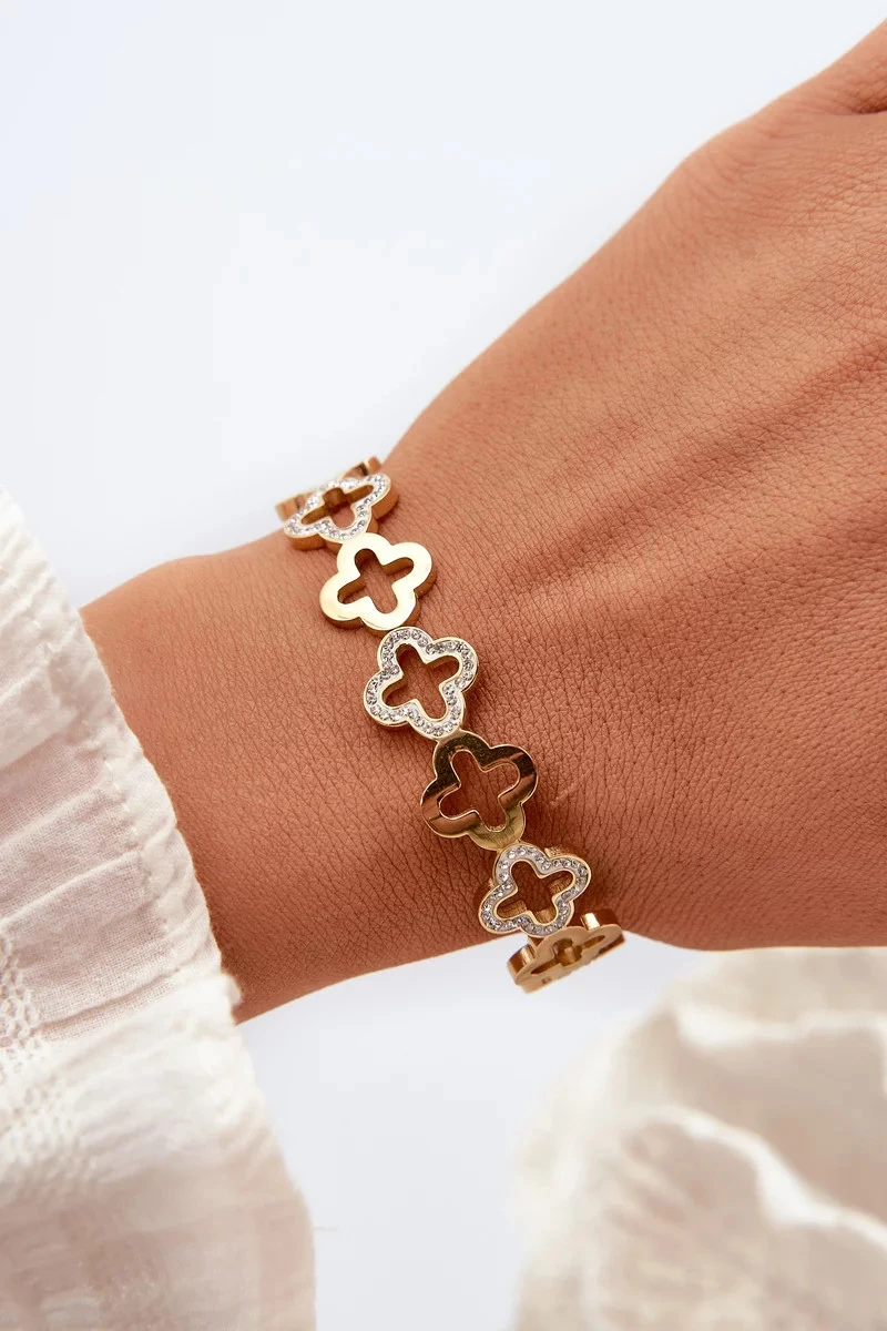 Dámský náramek zdobený kubickými zirkony, nerezová ocel, zlato