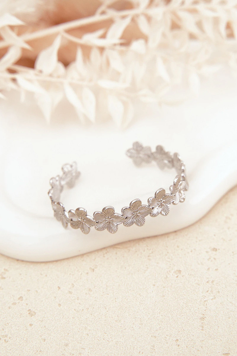 Dámský náramek ze nerezové oceli s květinkami stříbrný