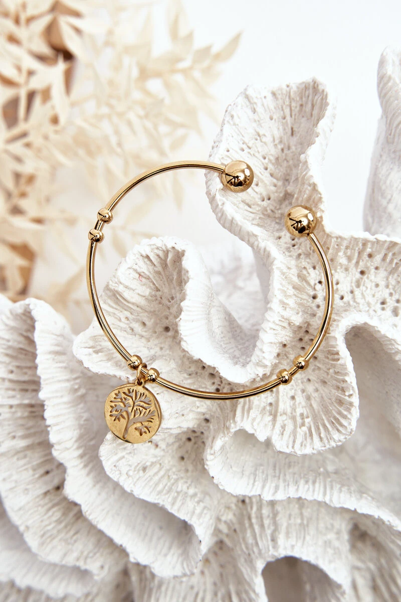 Dámský navlékací ocelový náramek strom zlate