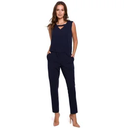 Tento jednodílný overal se díky svému klasickému střihu se zúženými nohavicemi a elastickým pasem skvěle hodí na každodenní nošení do kanceláře i na slavnostní příležitosti.