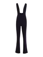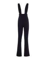 Overal s vysokým pasem, širokými ramínky, zapínáním na knoflíky na zádech, všitým zavinovacím páskem a zipem na boku.