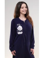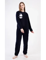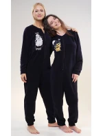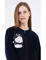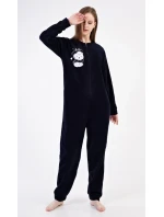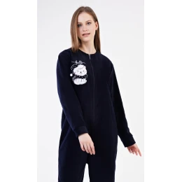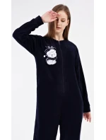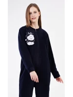Dámský polarový overal Kočka. Dámský overal má kulatý výstřih a zapínání na zip. Rukávy a kalhoty jsou zakončeny praktickými lemy. Decentní overal zdobí aplikace s motivem koťete, které má na sobě čepici a šálu pro zahřátí. Na tmavě modrém podkladu je vyšitý nápis 'Hello'. Použitý materiál je hřejivý a poddajný na dotek, obzvláště ho oceníte v chladných zimních dnech.