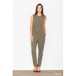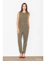 Elegantní dámský overal M488 FIGL - má dlouhé nohavice, je bez rukávů - overal se zapíná na zip a má pásek se zlatou kovovou sponou - s kapsami - pohodlný overal moderního střihu se velmi příjemně nosí