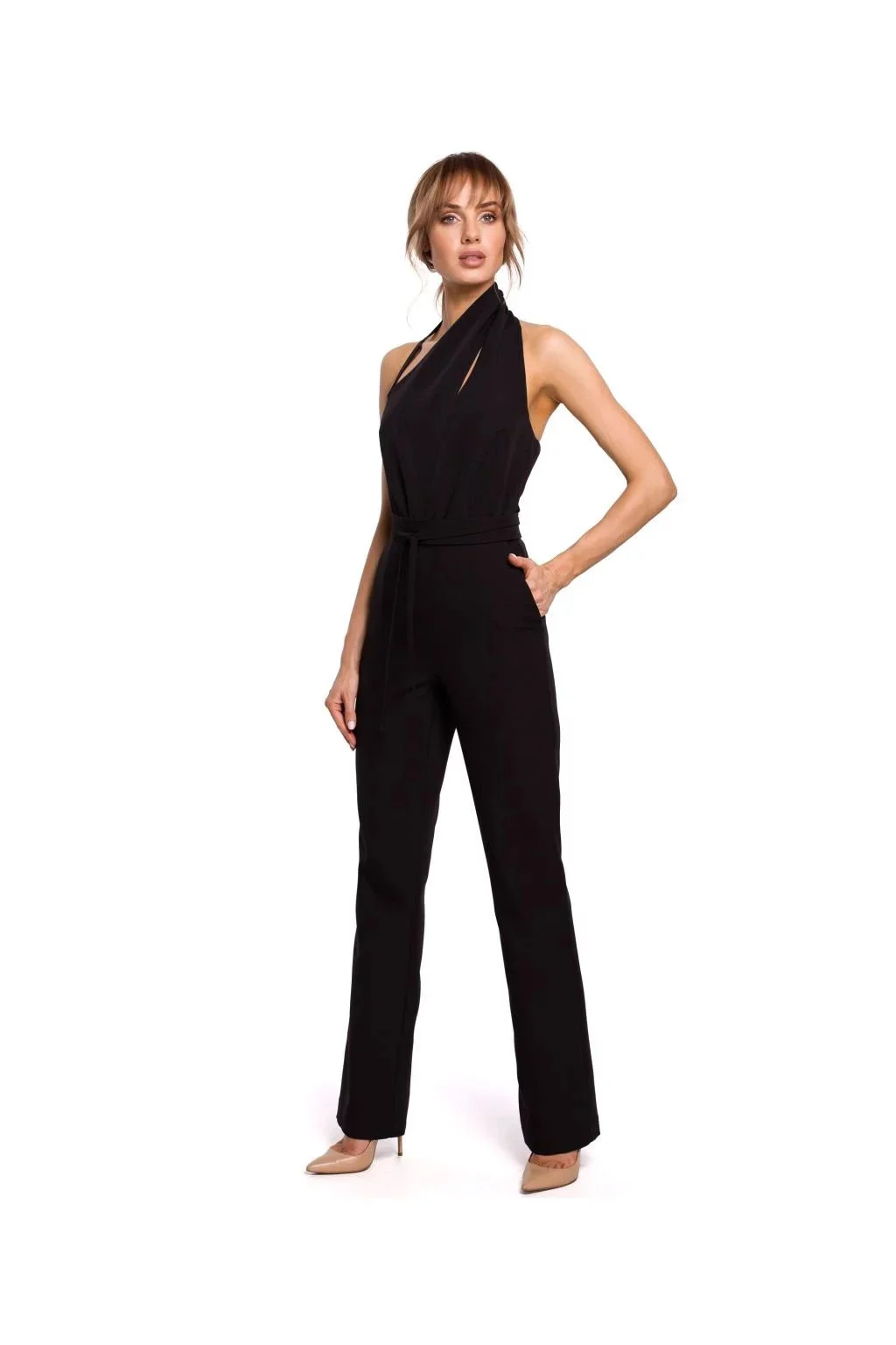 Potřebujete společenský model, ale sukně nenosíte? Právě pro vás máme elegantní společenský overal zajímavého provedení. Zajímavě řešený top s asymetrickým výstřihem a volnými zády. Kalhoty s bočními kapsami.