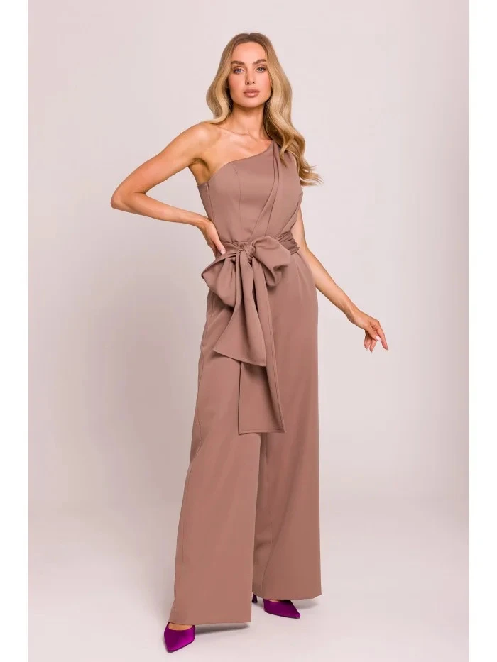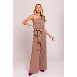 - asymetrický jednodílný overal design na jedno rameno se šerpami na zavazování
