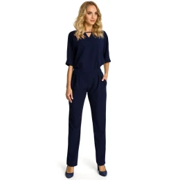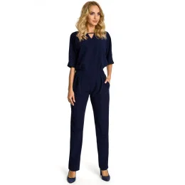 Pohodlný a ležérní, přesto elegantní overal s volnějším horním dílem, krátkými rukávy a rovnými nohavicemi se záševky. Pro každodenní i slavnostní příležitosti.