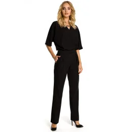 Pohodlný a ležérní, přesto elegantní overal s volnějším horním dílem, krátkými rukávy a rovnými nohavicemi se záševky. Pro každodenní i slavnostní příležitosti.