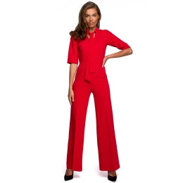 Nadčasový overal s nádechem moderny. Klasický véčkový výstřih má zajímavé dlouhé zavazování. Široké kalhoty vytvářejí elegantní celkový dojem. Doplňte vzhled svými oblíbenými jehlovými podpatky a efekt je zaručen.