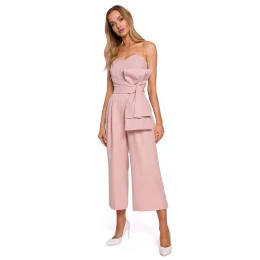 Prolomte stereotypy a vyjádřete se svým oblečením! Tento oblek má sílu! Výrazný korzetový top s výraznými detaily, jako je přehozená mašle a pásek uvázaný kolem pasu, a široké nohavice v délce 7/8 zdůrazní váš osobitý styl. Kryté zapínání na zip.