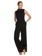 Kombinéza se nyní nadobro zařadila do šatníku určeného pro zvláštní příležitosti. Náš fantastický overal s elegantními širokými nohavicemi se díky jedinečnému hornímu dílu s ohrnovacím límcem a ozdobným zapínáním na ramenou a dvojitému ozdobnému přednímu dílu skvěle hodí na velké výlety. Oblek je bez podšívky a zapíná se na krytý zip.