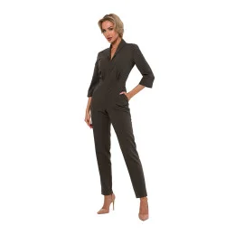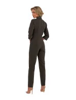 Kombinéza s 3/4 rukávy a vycpaným límcem se zapíná na krytý zip. Místní řasení v pase, úzké nohavice s prošitím uprostřed. Navrženo a ušito v Polsku.