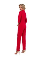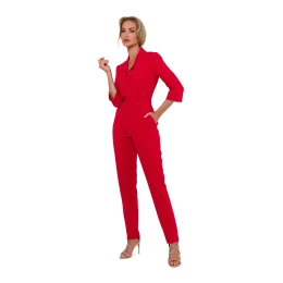 Kombinéza s 3/4 rukávy a vycpaným límcem se zapíná na krytý zip. Místní řasení v pase, úzké nohavice s prošitím uprostřed. Navrženo a ušito v Polsku.