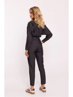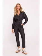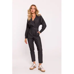 Eleganční dámský kombinéza vyrobený z bavlněné látky, ideální na každý den i na speciální příležitosti. Horní část na zapínání s límcem dodává styl, a zapínání na rozporek, knoflík a skrytý knoflík zajistí pohodlí a bezpečnost nošení. Dlouhé rukávy na suchý zip a súžené nohavice zdůrazňují postavu. Boční kapsy přidávají praktičnost a opasek na suchý zip s možností regulace umožňuje ideální přizpůsobení pasu. Navržen a ušit v Polsku, tento kombinéza spojuje styl, pohodlí a funkčnost.