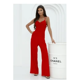 Overal dámský s tenkými ramínky, zapíná se na skrytý zip. Na přední straně ozdobné drapování, střižený v pasu, po stranách kapsy. Ideální na mnoho příležitostí.