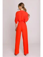 Elegantní a stylový dámský overal, který spojuje pohodlí s ženským střihem. Horní část ve stylu překládané klopy s decentními záložkami se krásně skládá na postavě, a V výstřih dodává lehkosti a zdůrazňuje linii krku. Krátké rukávy zajistí pohodlí a volnost pohybu. Lehce rozšířené nohavice dodávají celku harmonické proporce a boční kapsy přidávají praktický charakter. Model se zapíná skrytým zipem vzadu, díky čemuž vypadá esteticky a elegantně. Overal navržen a ušit v Polsku s důrazem na detaily. Ideální volba na každý den, do práce nebo na speciální příležitosti.