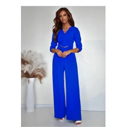 Elegantní a pohodlný overal s elegantním střihem, ideální na různé příležitosti. Vyrobený z lehkého, příjemného na dotek materiálu, poskytujícího pohodlí při nošení. Má výstřih do šířky srdce, který jemně zdůrazňuje linii krku a dodává ženskost. V pasu a na rukávech je umístěná elastická guma, díky čemuž se overal skvěle přizpůsobuje postavě. Vložené kapsy na bocích přidávají funkčnost a zakrytý zip zaručuje estetické provedení. Ozdobný řetízek v pase je stylovým akcentem, zdůrazňujícím pas a dodávajícím celku výjimečný charakter. Ideální volba pro každodenní stylizace, setkání nebo večerní vycházky.