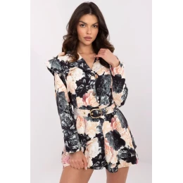 Elegantní dámský kombinéza je stylovým návrhem pro mnoho příležitostí ideální pro práci, na návštěvy nebo večírky. Vyrobený z lehké a příjemné směsi polyesteru a viskózy zaručuje pohodlí a skvělé přizpůsobení postavě. Moderní květinový potisk mu dodává ženský šarm, a volánky na ramenou jemně podtrhují stylový charakter. Kombinéza má mini délku, což jí dodává lehkost a eleganci, a dlouhé rukávy a klasický límec dodávají elegantní akcent. Zapínání na knoflíky a pásek zdůrazňující pas dělají celkový dojem mimořádně elegantní a ženský. To je ideální nabídka pro ženy, které oceňují spojení klasiky s moderním designem.