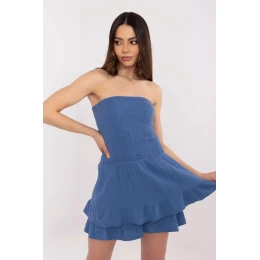 Elegantní kombinéza pro ženy ideální na každodenní stylizace, kombinující pohodlí s trendy vzhledem. Vyrobená z měkké bavlny, poskytuje pohodlí po celý den. Krátké nohavice a bezrukávový střih dělají z této kombinézy skvělou volbu na teplejší dny. Kombinéza je charakteristická jednoduchým, hladkým vzorem, který zdůrazňuje minimalistický charakter oblečení. Drapování v horní části a volán na vrchu dodávají celku lehkost a jemnou ženskost. Bez zapínání zajišťuje pohodlí nošení a snadnost oblékání.