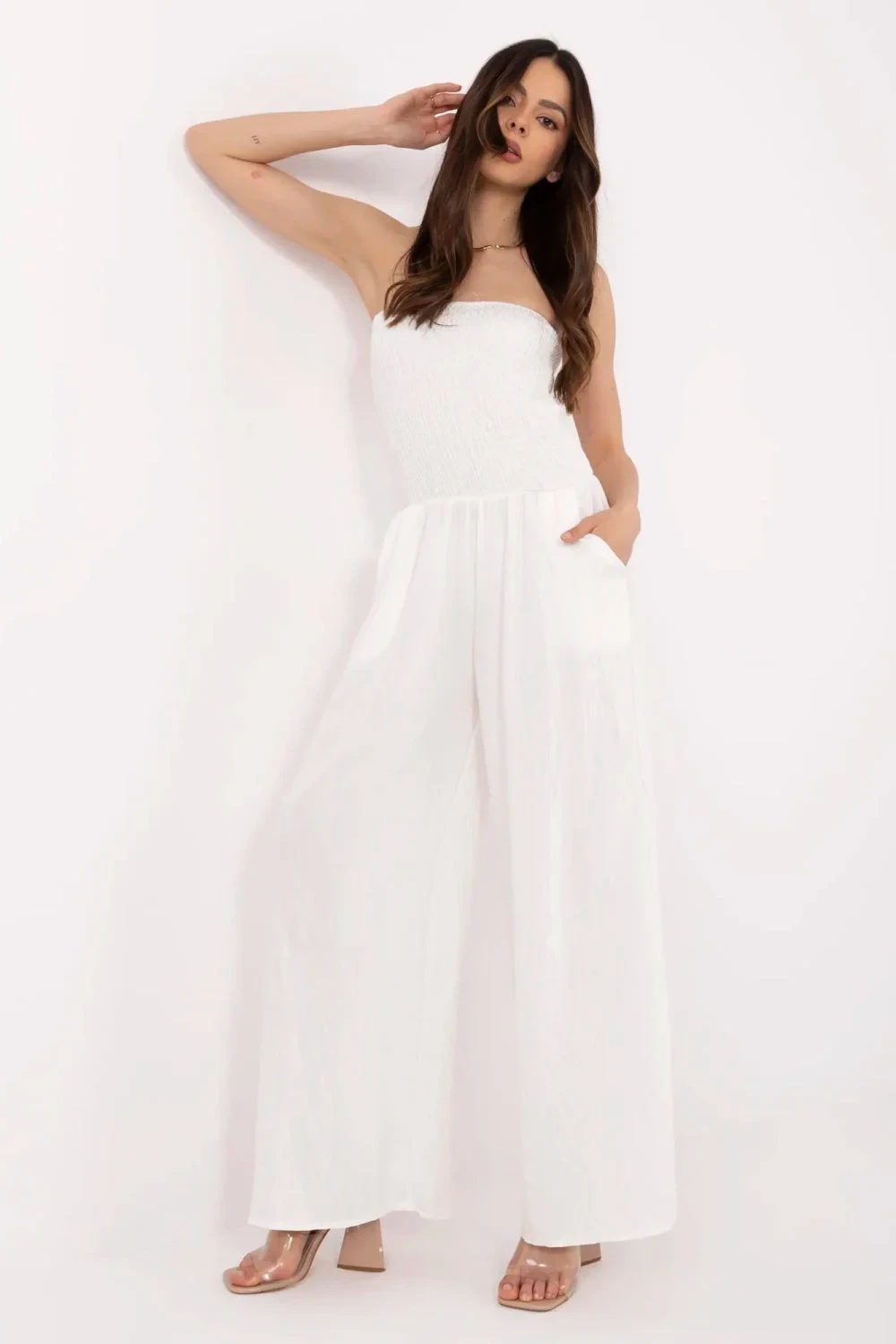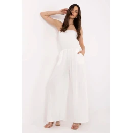 Elegantní a pohodlný overal ideální na každodenní vycházky. Vyrobený z prodyšné a měkké viskózy, zaručuje pohodlí po celý den. Dlouhý, volný střih s širokými nohavicemi a španělským výstřihem vytváří moderní, volný vzhled. Hladký materiál zdůrazňuje minimalistický charakter modelu a zaškrcení v horní části mu dodává jemnou lehkost. Bez zapínání usnadňuje rychlé oblékání a boční, zasunuté kapsy zvyšují funkčnost. Ideální volba pro ženy, které si cení styl a pohodlí v jednom.