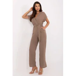 Univerzální bavlněný overal s hladkým povrchem je skvělou volbou do práce i na každý den. Vyrobený z prodyšné přírodní bavlny poskytuje pohodlí a volnost pohybu po celý den. Model s krátkým rukávem a přesýpacím V výstřihem jemně zdůrazňuje horní část postavy, dodávajíc celému outfitu eleganci. Dlouhé nohavice opticky prodlužují postavu, a šněrování v pasu a přiložený textilní pásek krásně zdůrazňují pas. Vložené kapsy po stranách zvyšují funkčnost a dodávají vzhledu casualový charakter. Tento overal je pohodlnou a stylovou alternativou pro každodenní střihy, ideální na léto, do kanceláře nebo na volné výlety.