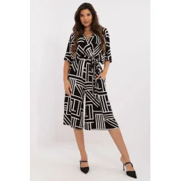 Elegantní kombinéza s geometrickým vzorem je ideální volbou na každý den, do práce i na společenské události. Vyrobená z lehké, prodyšné látky s příměsí elastanu poskytuje pohodlí a volnost pohybu. Model má krátké rukávy a zahnutý výstřih, který jemně zdůrazňuje linii krku. Šněrování v oblasti krku přidává eleganci a pásek v pasu umožňuje optické zeštíhlení postavy. Kalhoty typu culotte po kolena vytvářejí moderní a trendy střih. Další výhodou jsou praktické, boční kapsy. Je to ženská a funkční volba pro různé příležitosti.