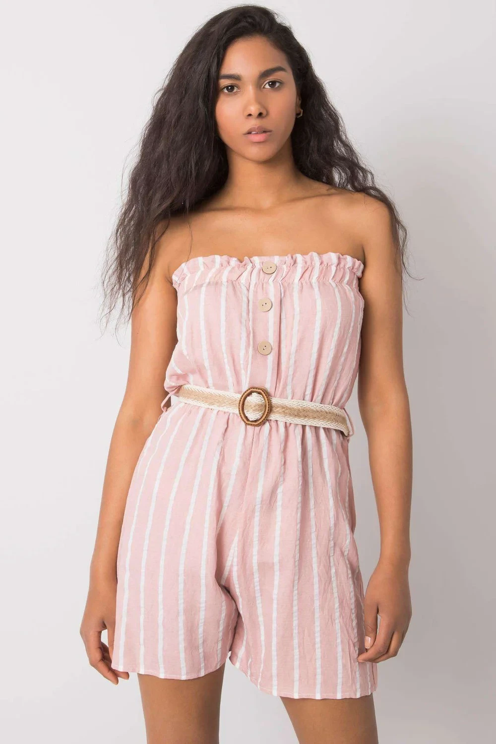 Každodenní stylizace v proužkovaném kombinéze je stylový a pohodlný návrh. Vyrobený z lehkého, prodyšného materiálu, skvěle se hodí na teplé dny. Horní část s vsazenou gumou zajišťuje pohodlné nošení a ozdobné knoflíky vpředu mu dodávají šarm a módní charakter. V pasu je elastická guma a zapínací pásek, který krásně zdůrazňuje postavu. Svislé pruhy opticky prodlužují postavu, dodávají celku lehkost. Je to ideální volba na každý den, ať už na procházku nebo setkání s přáteli.