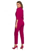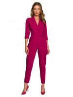 Tato kombinéza má více než jednu tvář. Díky obálkovému výstřihu a šálovému límci, 7/8 dlouhým rukávům s ozdobnými průstřihy, zavazování v pase a štíhlým, zkráceným nohavicím je to buď kancelářská elegance, nebo bláznivý kousek. Nepodšitý overal.