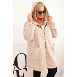 Dámský plášť Plus Size z viskózy se zapínáním na zip a kapucí béžový