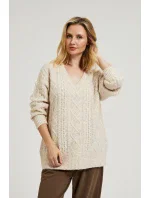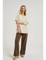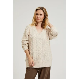 Dámský svetr z měkké pleteniny s výstřihem do V tmavě béžový
