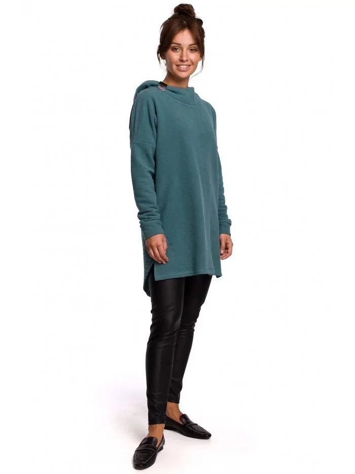 Dámský pletený svetr se zaobleným lemem B176 tyrkysový - BeWear