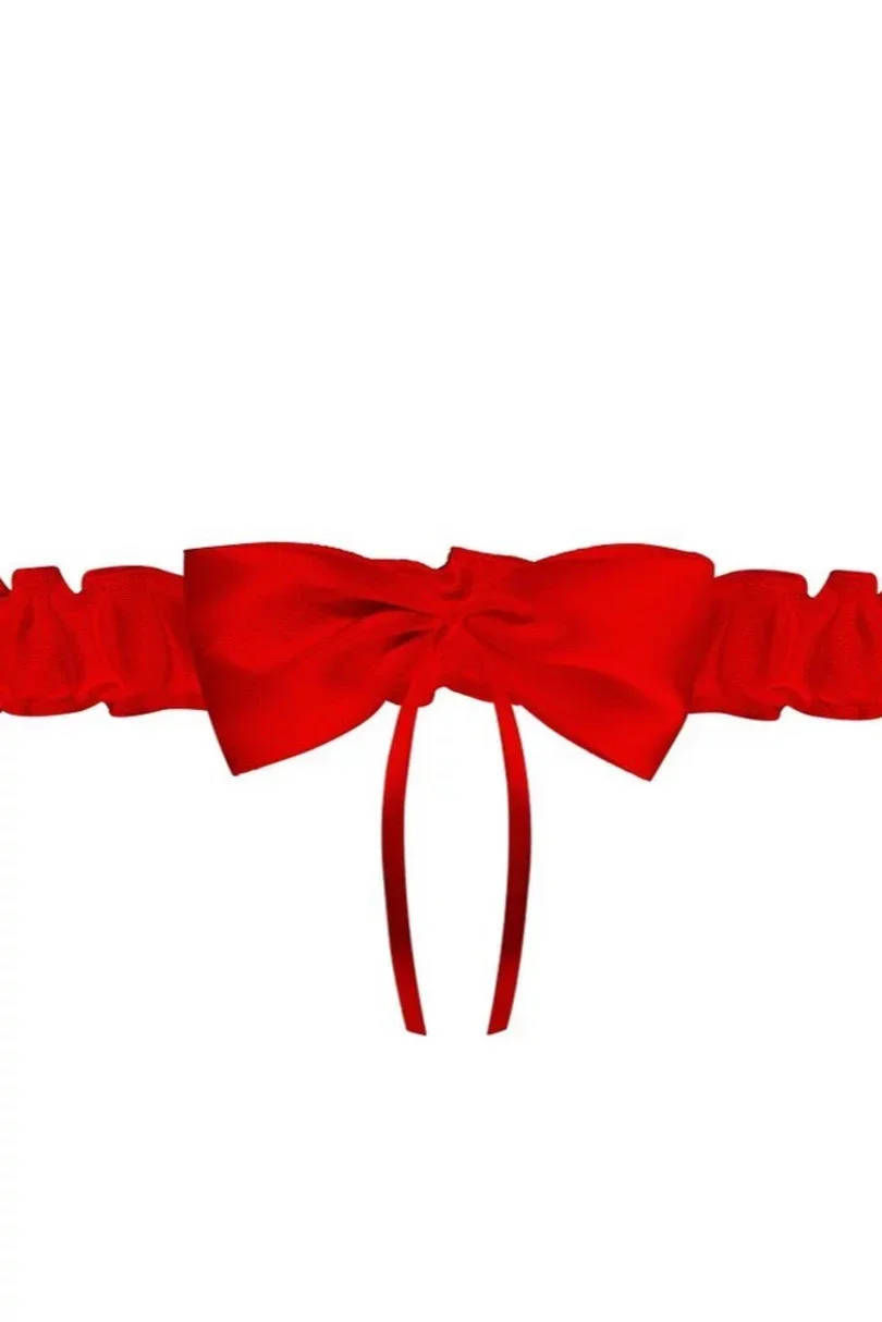Červený podvazek Andora jemně podtrhne jedinečnost vašeho plesu. Jedná se o nápadný model z červeného saténu s ozdobnou mašlí.