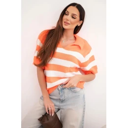 Dámský pruhovaný svetr s límečkem a krátkým rukávem oranžový