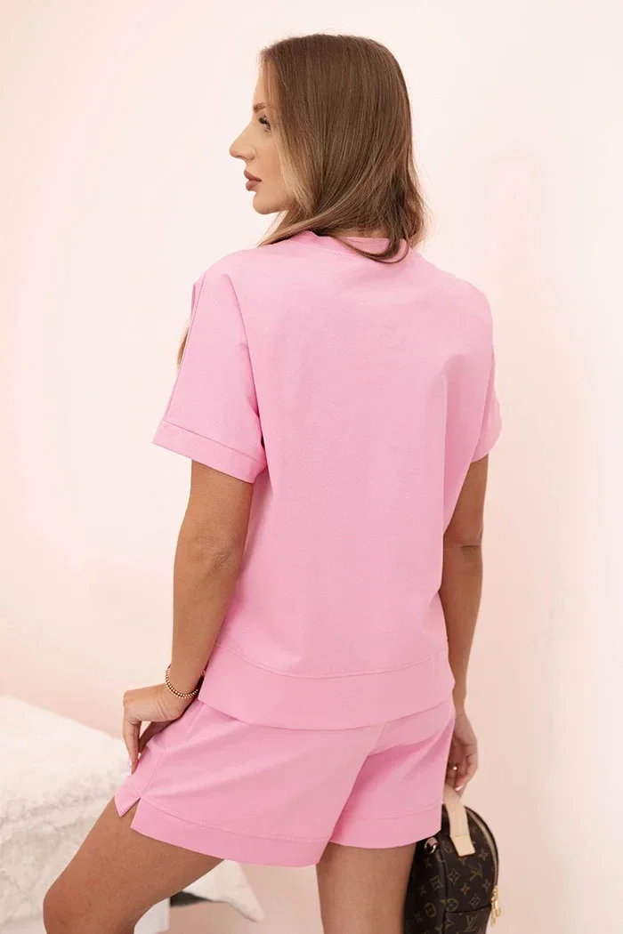 Dámský punto set s krátkými rukávy a šortkami světle růžová