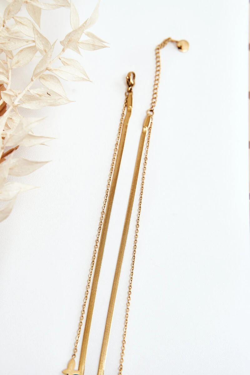 Krásný dvojitý řetízek je zdoben různými motivy. Perfektní jako každodenní stylingový doplněk. Má klasické zapínání s nastavitelnou délkou. Řetízek s klasickou kotvicí a hadí vazbou. Nezapomeňte se také podívat na další modely náhrdelníků na našem webu!
