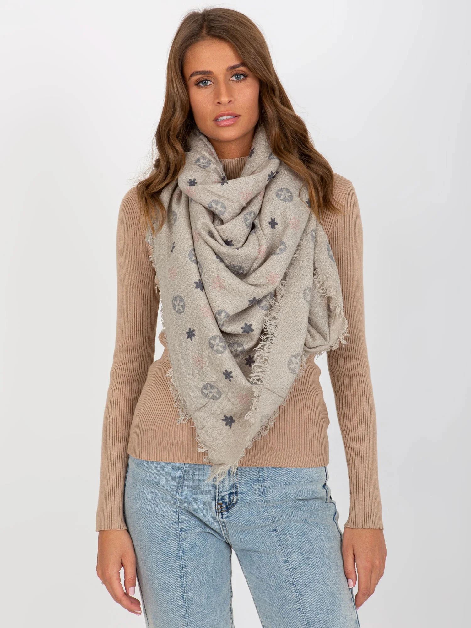 Šedý dámský vzorovaný šátek .