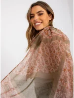 Černo-oranžová šála s potiskem.