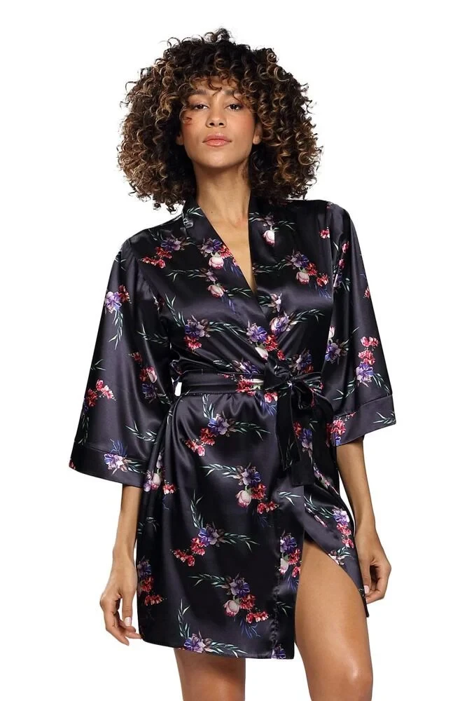 Exkluzivní negližé - župan, vázaný v pase. Hladký, elegantní, ženský. Rukávy kimonového typu až po loket. Stojí to za to.