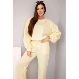 Dámský set máslo mikina s broží a kalhoty s rovnou nohavicí žlutý