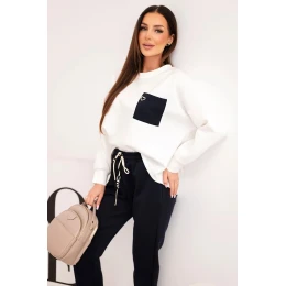 Stylový a pohodlný dámský souprava tepláková je ideální nabídkou pro ženy, které oceňují komfort a módní vzhled. Mikina z měkkého materiálu volného střihu byla obohacena o kontrastní kapsičku s roztomilým akcentem ve tvaru srdíčka, což dodává celku ženský půvab. Kalhoty s elastickým pasem a tkaničkami zajišťují dokonalé přizpůsobení postavě a plnou svobodu pohybu.