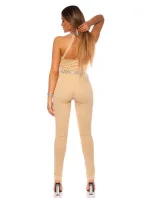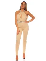 Dámský sexy overal s rafinovaným výstřihem OV18844 Béžová s kamínky - Koucla