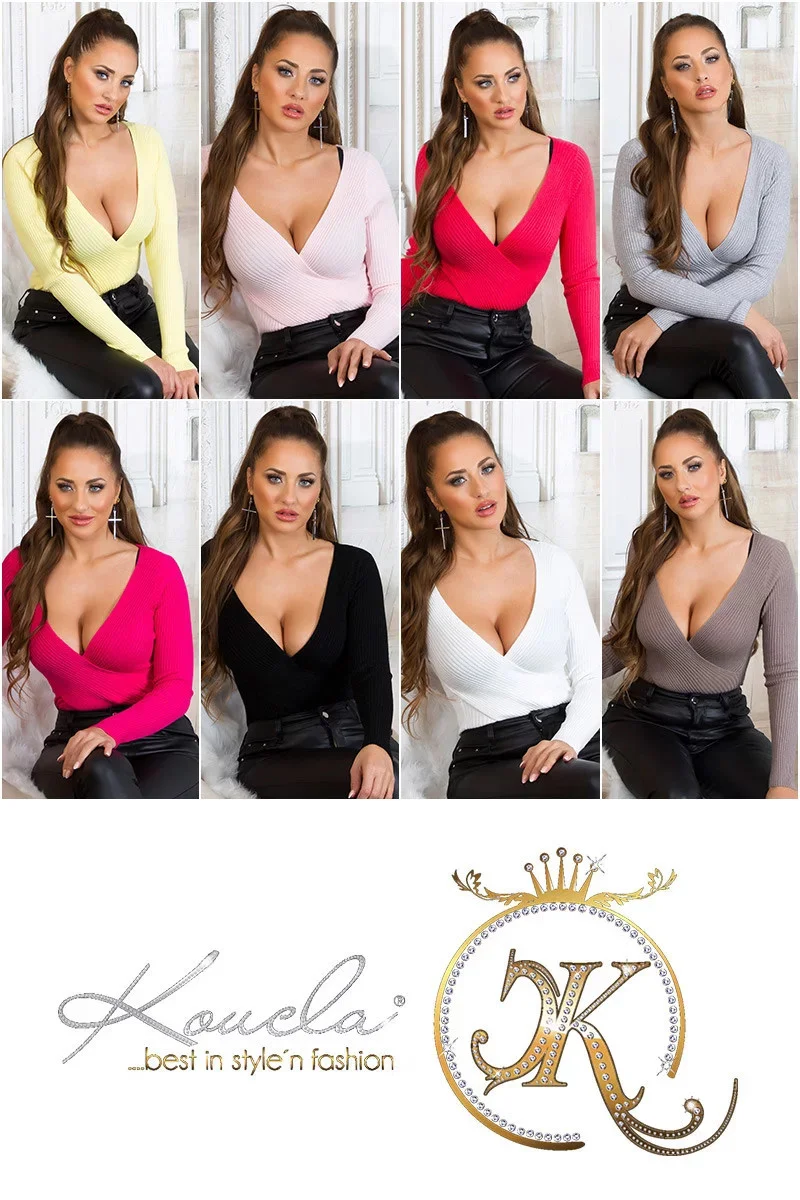 Dámský sexy svetřík se zavinovacími prvky IN-1537 Šedá - Koucla