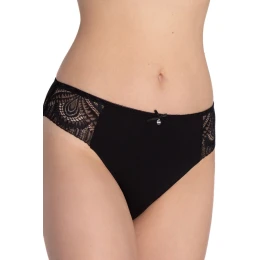 Figi LAMA to połączenie komfortu i ponadczasowej kobiecości. Wykonane z miękkiej, oddychającej dzianiny doskonale dopasowują się do sylwetki, zapewniając wygodę przez cały dzień. Po bokach zdobi je efektowna, delikatna koronka o misternym wzorze, która dodaje figom elegancji i lekkości. Model świetnie prezentuje się zarówno w klasycznej czerni, jak i w subtelnym beżu. Idealne jako element kompletu – tworzą harmonijną całość z dopasowanym biustonoszem LAMA.