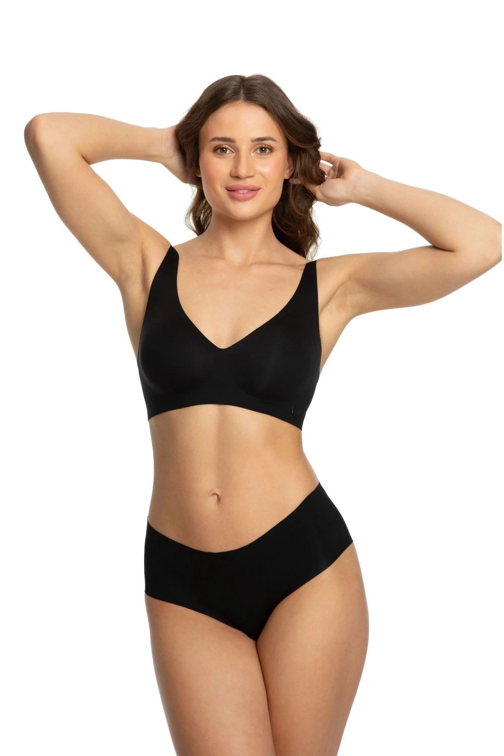 Dámský sportovní top Jelly bra basic black JULIMEX - černá barva - z prodyšného materiálu - bez kostic - 3D Jelly Fit System - elastický pásek pro zajištění vložky proti posunutí - tenká ramínka - dvouřadé zapínání na háčky