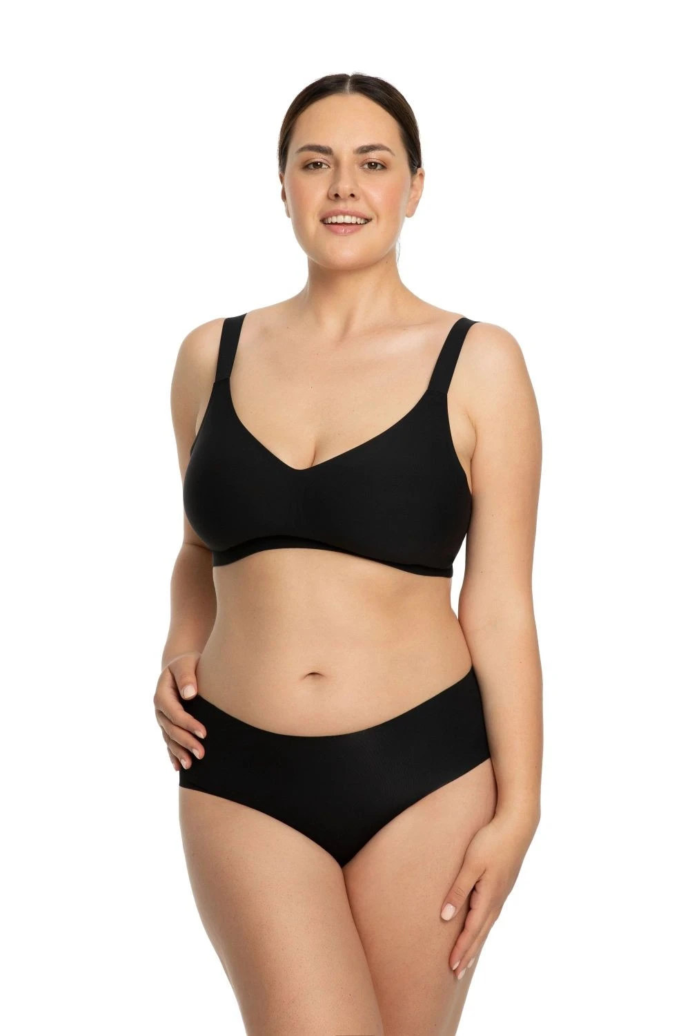 Dámský sportovní top Jelly bra comfort black JULIMEX - černá barva - z prodyšného materiálu - bez kostic - 3D Jelly Fit System - elastický pásek pro zajištění vložky proti posunutí - široká regulovatelná ramínka - třířadé zapínání na háčky