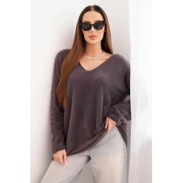 Dámský svetr hnědý z vlny s výstřihem do V hnědý
