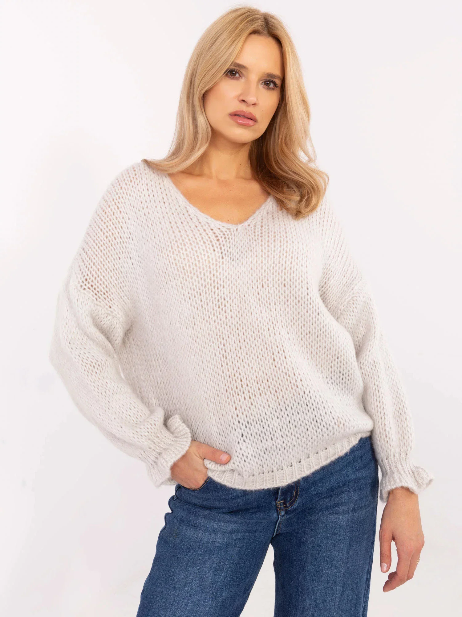 Dámský svetr MI SW 64109.15X Světle šedý / béžový - FPrice