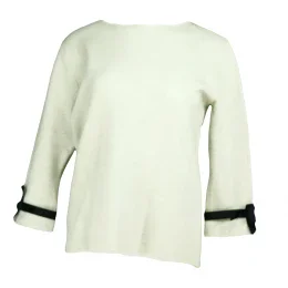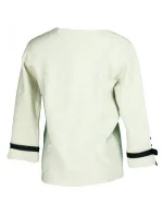 Dámský svetr na rukávech zdobený bílým plisovaným volánkem a černou stužkou SW 0202 - Gemini