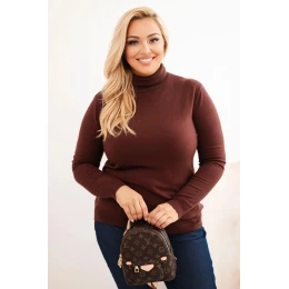 Dámský viskózový svetr Plus Size s klasickým střihem hnědý